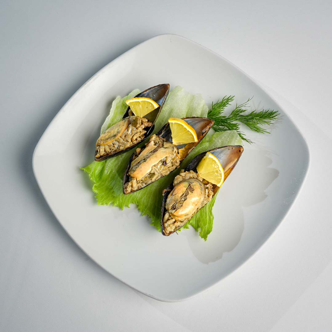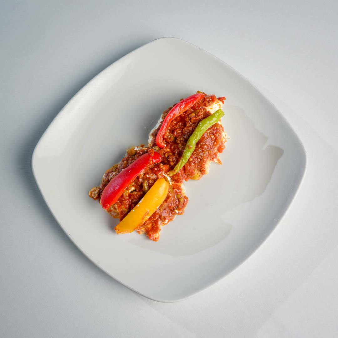 SHRIMP WITH MIX OF PUREED AUBERGINE & BECHAMEL
